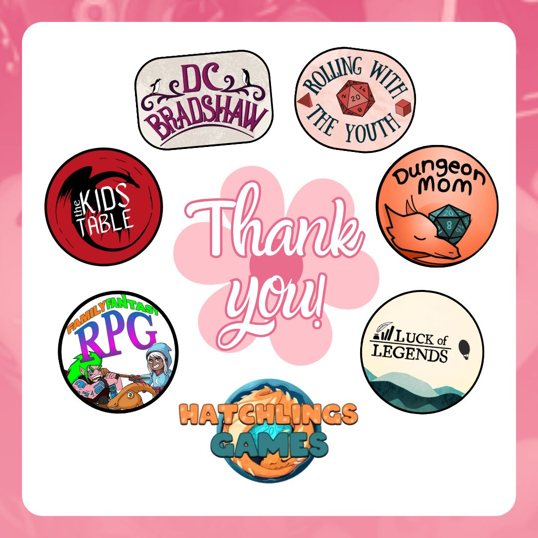 AND... thank you to the TTRPGkids site sponsors! These awesome people are supporting future TTRPGkids projects, allowing me to go to conventions, pre-fund art for future projects, and generally supporting the resource; please go check out their work and support them as well!